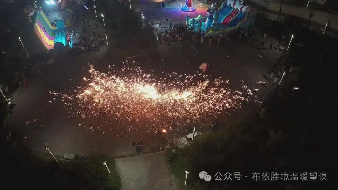 除了精彩的公益电影,活动现场的市集与非遗展示也同样吸睛。特色风味小吃摊前香气四溢,烟火气十足,不少群众穿梭其间挑选美食;游乐区内,小火车、钓鱼池等设施前满是大人带着小朋友玩耍的身影;非遗技艺展演更是热闹非凡,引得过往群众纷纷驻足围观、拍照记录,闪烁的星火在夜空中交织绽放,绚烂夺目,瞬间将现场氛围推向高潮。