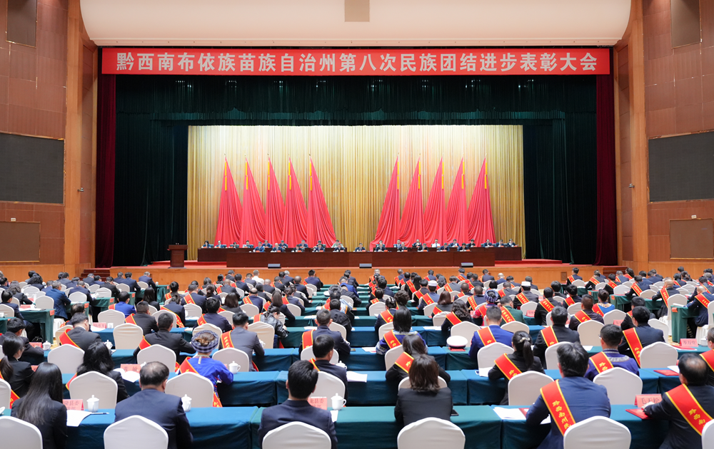 5月28日,黔西南州第八次民族团结进步表彰大会在兴义召开。州委书记陈昌旭出席并讲话,州委副书记、州长黄兴文主持,省民宗委二级巡视员吴继堂出席并讲话,州政协主席周舟出席,州委副书记、兴义市委书记顾先林宣读表彰决定。全州60个集体和150人荣获表彰。