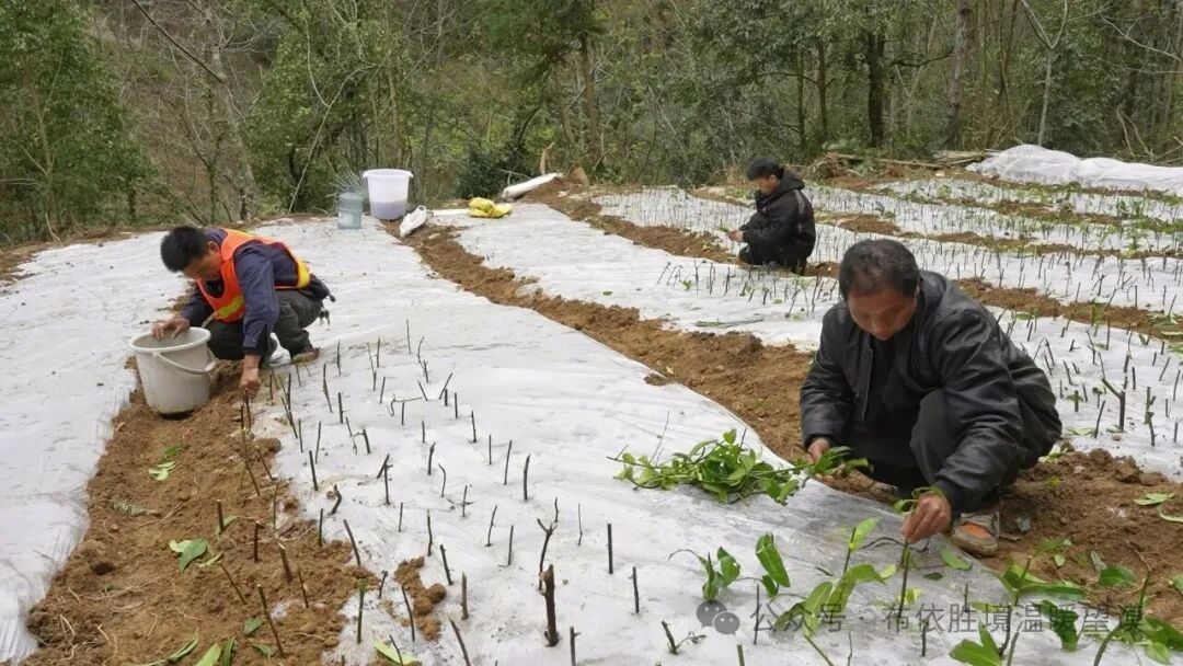 时下正值春耕关键期,巴巴坪村的村民们正抢抓农时,开展小花清风藤的育苗与移栽工作。大家手持工具,从野生植株上截取健壮枝条,经过规范处理后扦插至育苗区,待幼苗成型,移栽至山间林下的仿野生种植区域。
