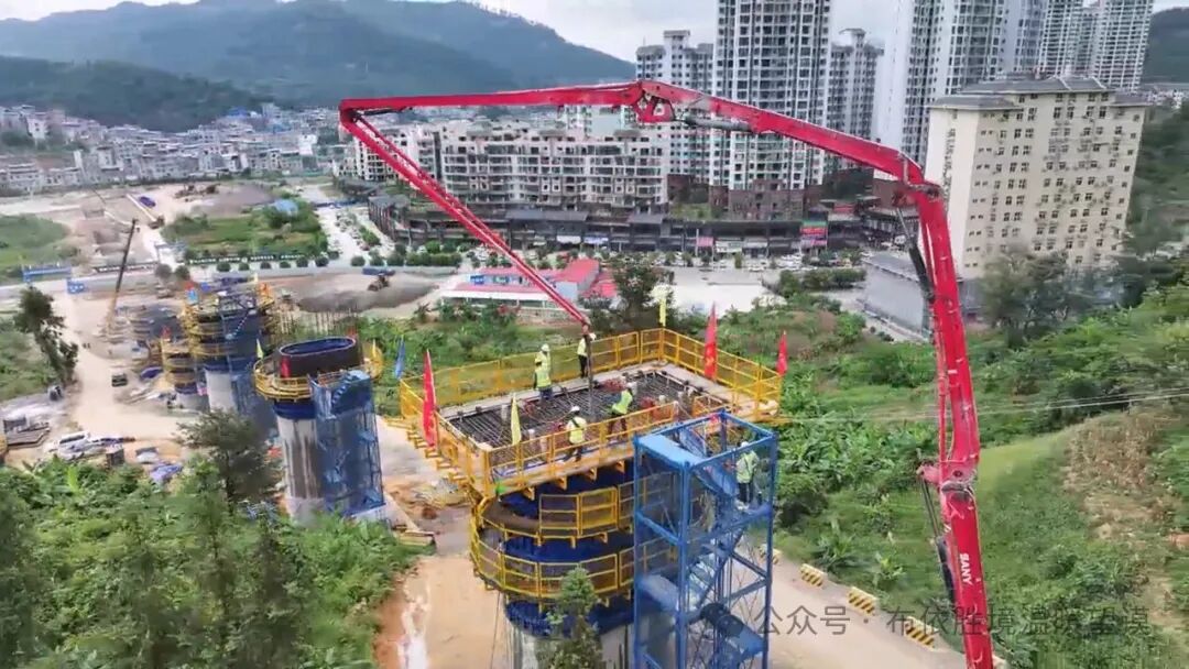 在桥墩浇筑过程中,项目安全、质量、试验等管理人员全程盯控,强化现场管理,同时推进桩基环切工艺、墩身钢筋定位卡具、墩身喷淋养护等工装使用,确保首墩顺利浇筑完成。